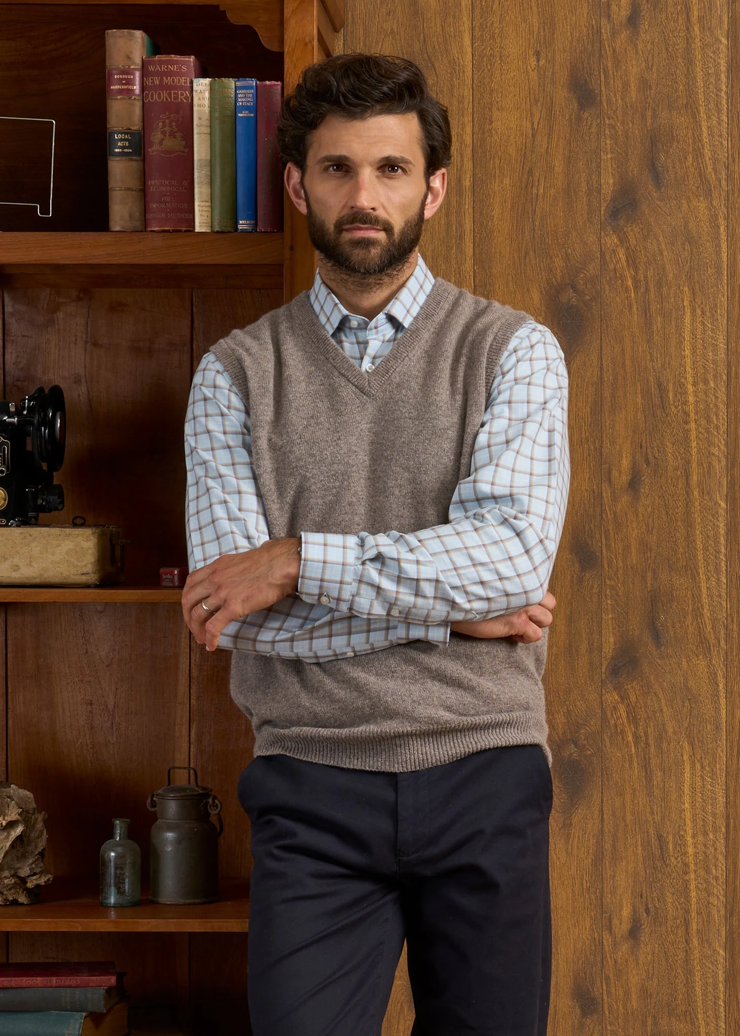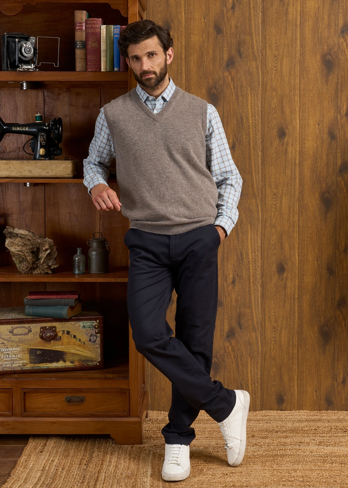 Perfect for both work and play, our soft and warm, versatile Norfolk slipover in Vole will provide lots of stylish wear and wonderful warmth for seasons to come. Excellently crafted from pure super-soft lambswool and spun by Europe’s oldest spinner, Z. Hinchliffe, founded in Yorkshire, England 250 years ago. It has a full saddle shoulder shaping, generously cut across the waist, designed with a relaxed, more-traditional and comfortable fit.